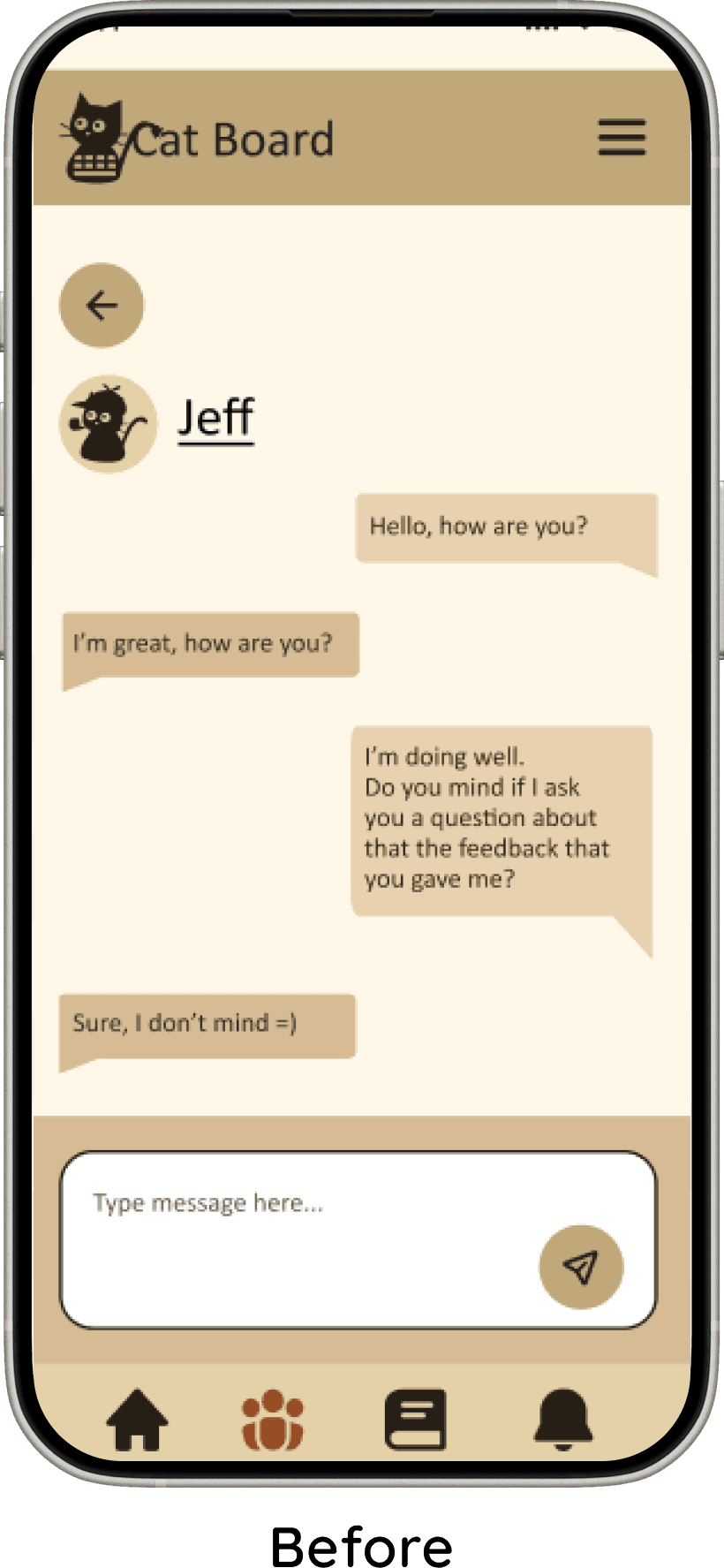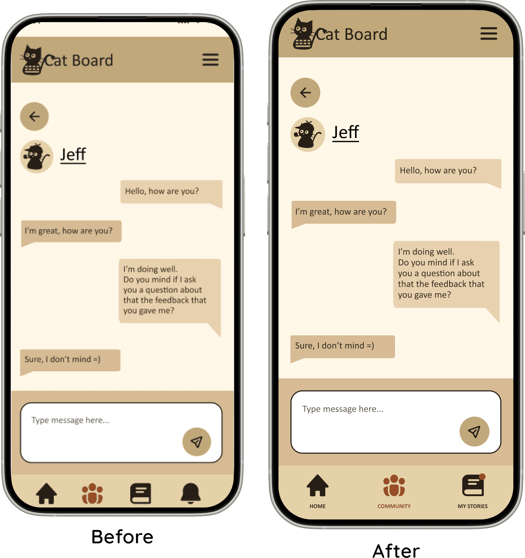 I redesigned the bottom navigation to reduce confusion around messaging. Users were unsure whether to look for messages under Community or Notifications.