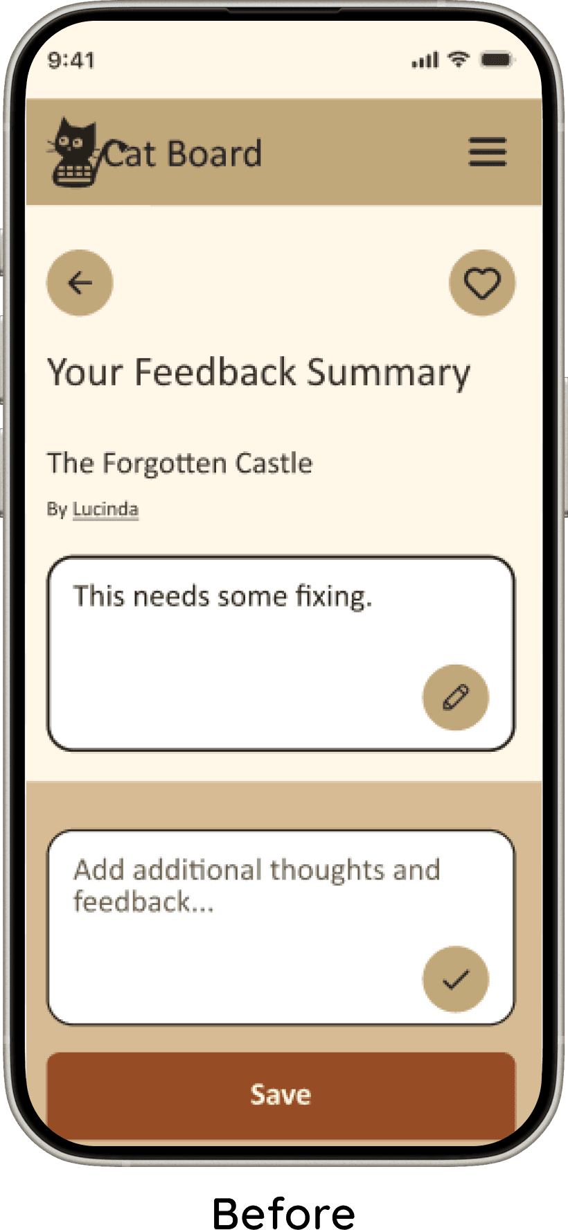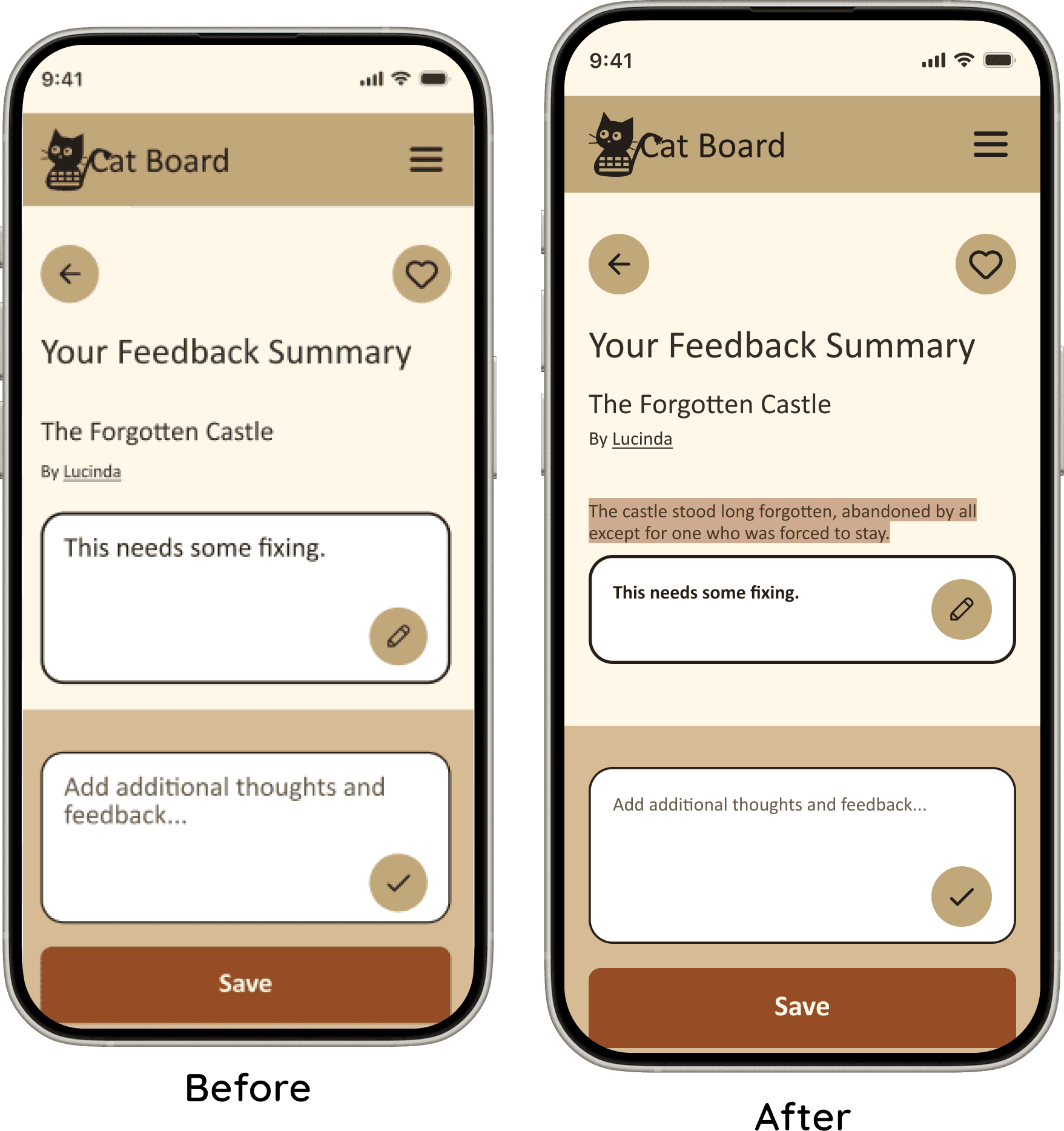 I differentiated the “Add Feedback” and “Edit Feedback” states, by reducing the size of the edit feedback field and applied a bolder outline, making it immediately clear when a user was editing existing feedback versus writing new feedback.