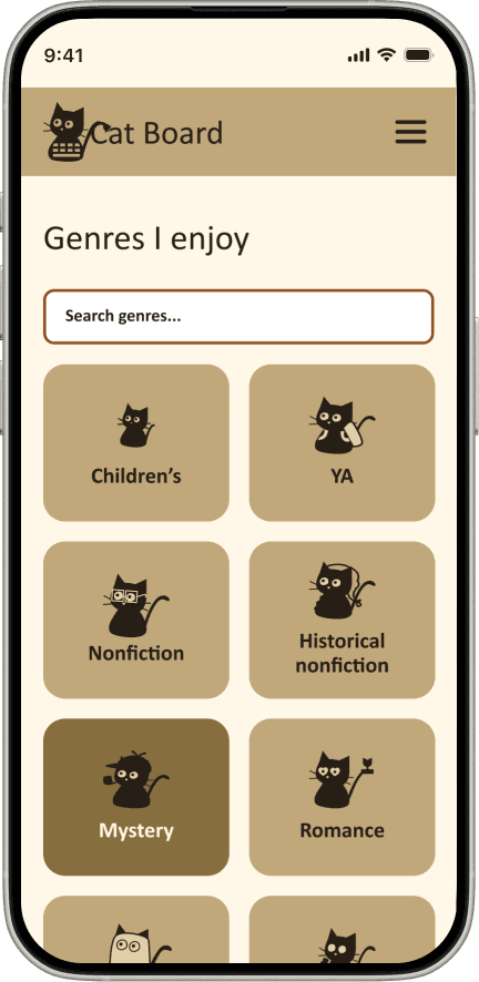 The visual design made a strong impression. The cats-and-keyboards theme felt memorable and charming, supported by warm, bookish colors and a clean, uncluttered layout. Custom cat genre icons were a standout detail—one user noted, “I love the cat icons, I can’t believe you made them.”