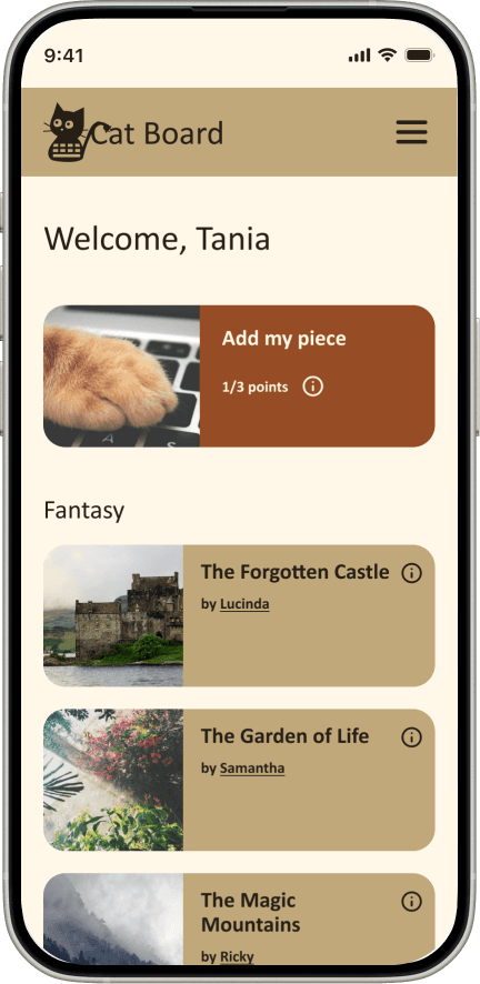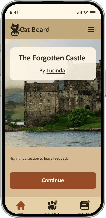 Cat Board is an end-to-end platform designed for amateur writers to share their works-in-progress, receive constructive feedback, and support others through peer critique. The platform also fosters connection through a built-in community feature, helping writers find encouragement, accountability, and creative alignment.