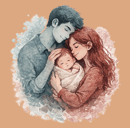 The logo reflects a family focused value by showing a mother with her baby, symbolizing love, care, and connection.