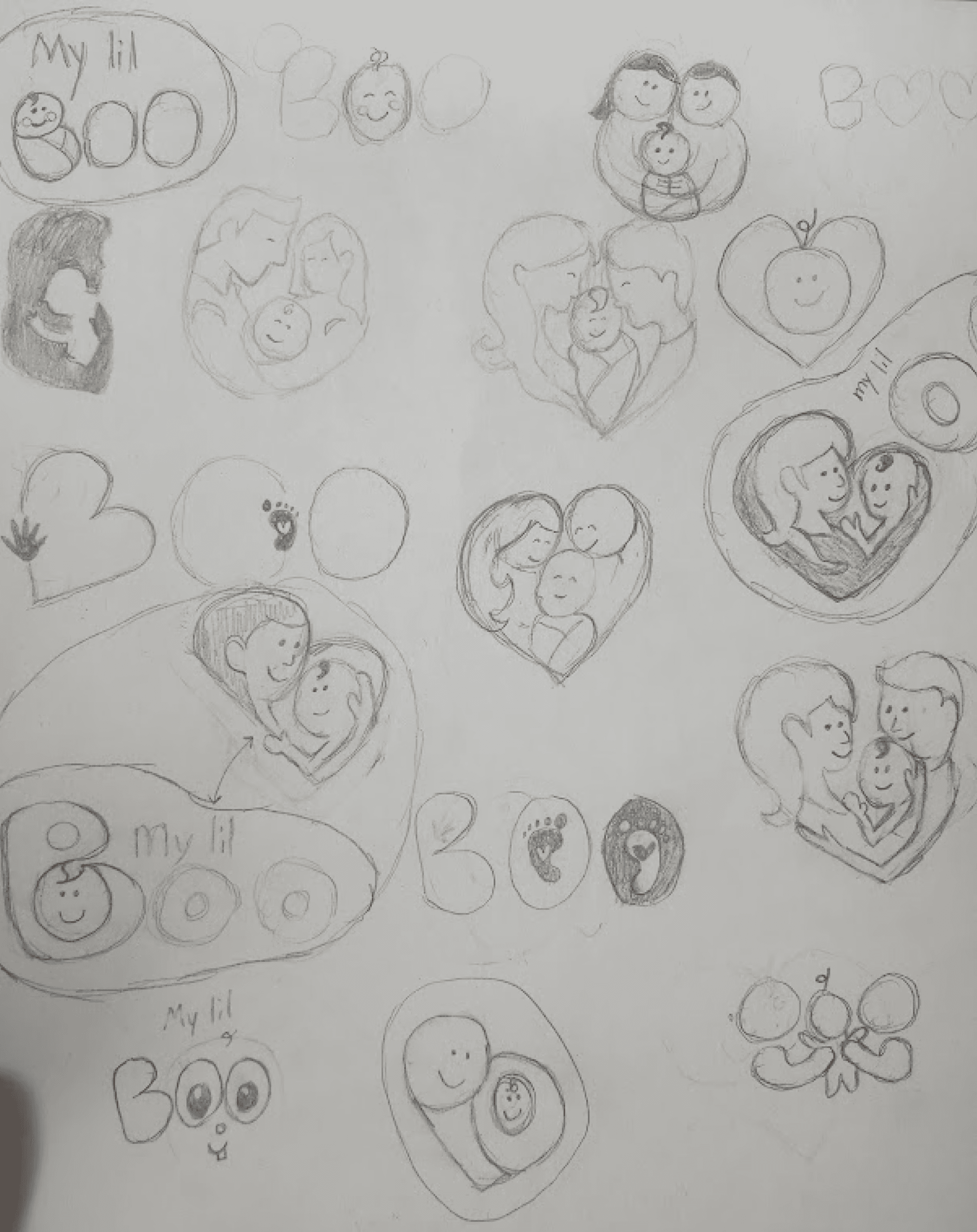 With the feature set defined and flows set, I began sketching the layout for My Lil Boo. I started with low-fidelity paper sketches, shown in the slideshow, which allowed me to quickly explore ideas and structure. This phase became one of my favorite parts of the process, as it helped translate concepts into tangible layouts.