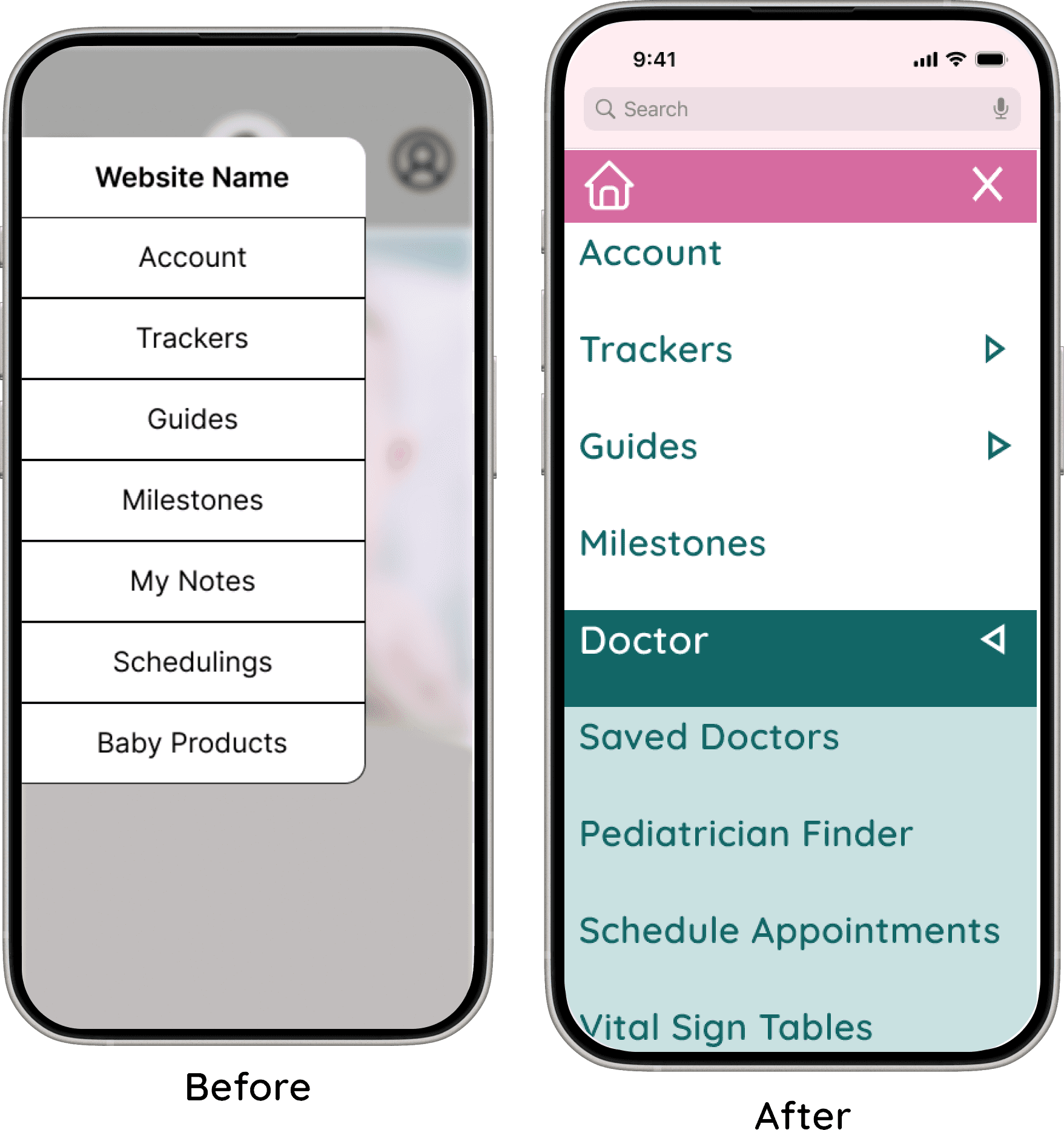 The second change focused on improving accessibility and usability within the hamburger menu. I increased the size of the menu icon and its buttons to make interactions easier and more accurate. This adjustment also reduced visual crowding, resulting in a cleaner and more approachable menu layout.