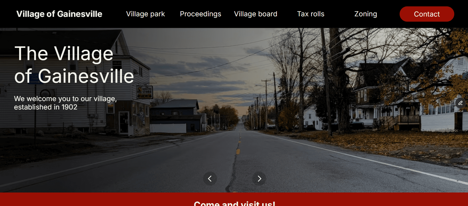 For the homepage, the hero would be a slideshow of the different parts of the town. I got this inspiration when looking at other village’s websites.