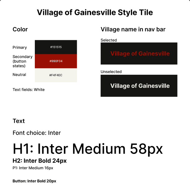 I embedded Google Maps into sections where there were addresses, which was inspiration from other village websites. This added to the website visually, as well as served a more practical purpose of helping new comers finding their way around. The homepage would have the whole village of Gainesville map embedded, so that users can look at everything in the town, as well as to get directions from their current location.